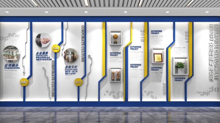 藍色大氣簡約企業文化墻企業歷程文化墻排版設計圖片